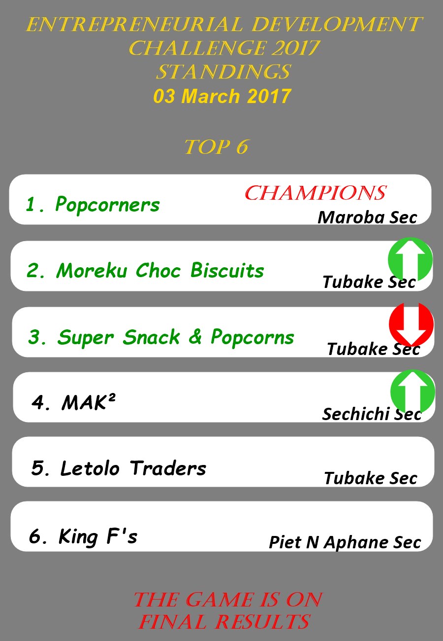 Entrepreneurial Development Challenge Final Standings as at 03 March 2017